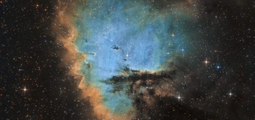 La nébuleuse Trifide partage la vedette de cette région extrêmement riche du ciel avec de nombreux objets brillants à proximité, notamment la nébuleuse de la Lagune située une paire de degrés au nord-ouest.